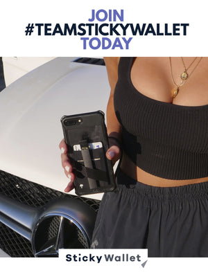 Hey guys! Riley & Parker here, co-creators of The StickyWallet, the revolutionary wallet alternative that simply sticks to the back of your phone case. It's crafted with premium Spandex material so it holds EXTRA SECURELY – your stuff will NEVER fall out, unlike cheap copycats out there – go with the real deal and you will NOT be disappointed!